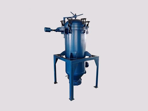 隨著混合液過濾量的增加,濾餅層越來越厚,過濾阻力增加,罐內(nèi)壓力升高,當(dāng)看到過濾機上部壓力表顯示為0.4Mpa時,停止向過濾機罐內(nèi)輸送混合液,開啟空壓機,通過管道經(jīng)溢流口向過濾機罐內(nèi)輸入空氣,在空氣壓力作用下,濾餅中的油被逐漸壓出,經(jīng)管道回到脫色鍋或攪拌罐,約30分鐘以后,濾餅被壓干,停止向過濾機內(nèi)輸入空氣,當(dāng)看到上部壓力表顯示為0時,打開蝶閥,啟動振動體,開始排渣,當(dāng)渣排凈時,關(guān)閉蝶閥及所有閥門,開始下一-輪過濾。脫色專用過濾機主要由提升架、罐體、不銹鋼篩網(wǎng)、振動排渣裝置、蝶閥、運輸支架組成。